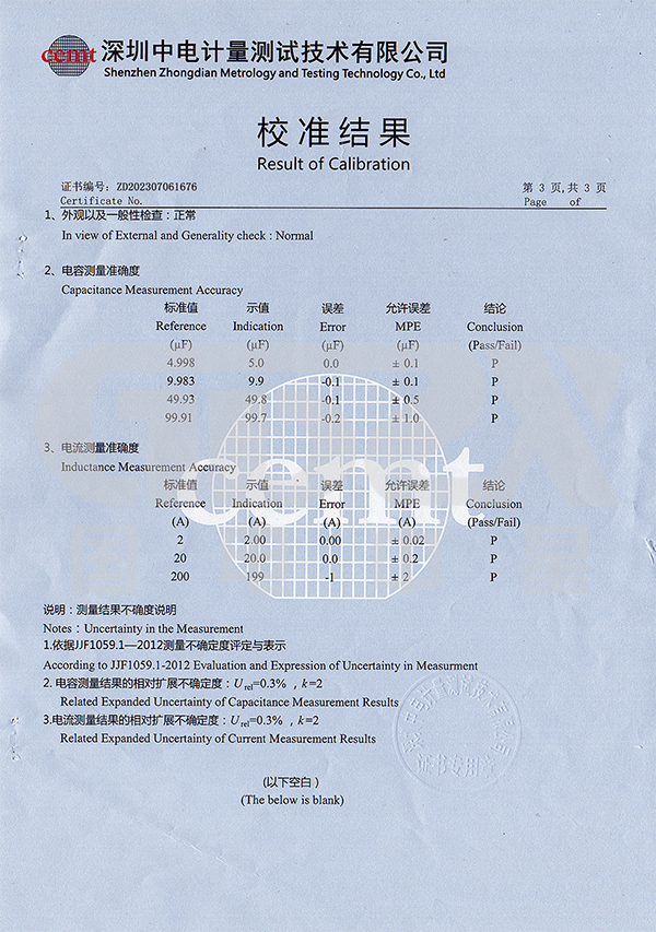 | 三相對地總電容3μF<CX<90μF 時測量精度±5% |