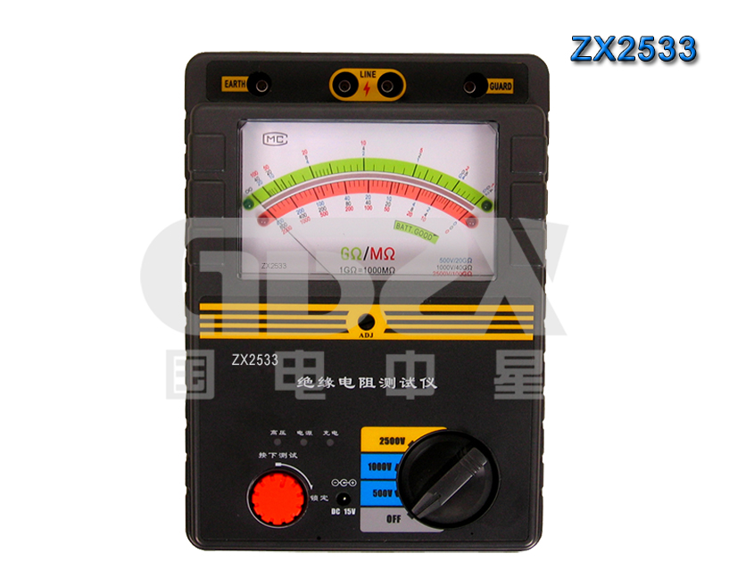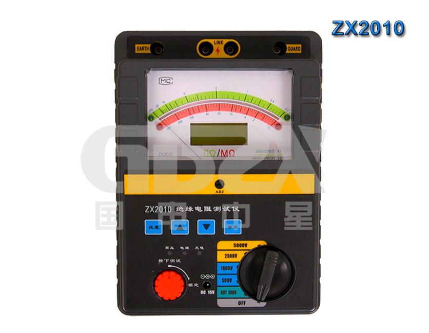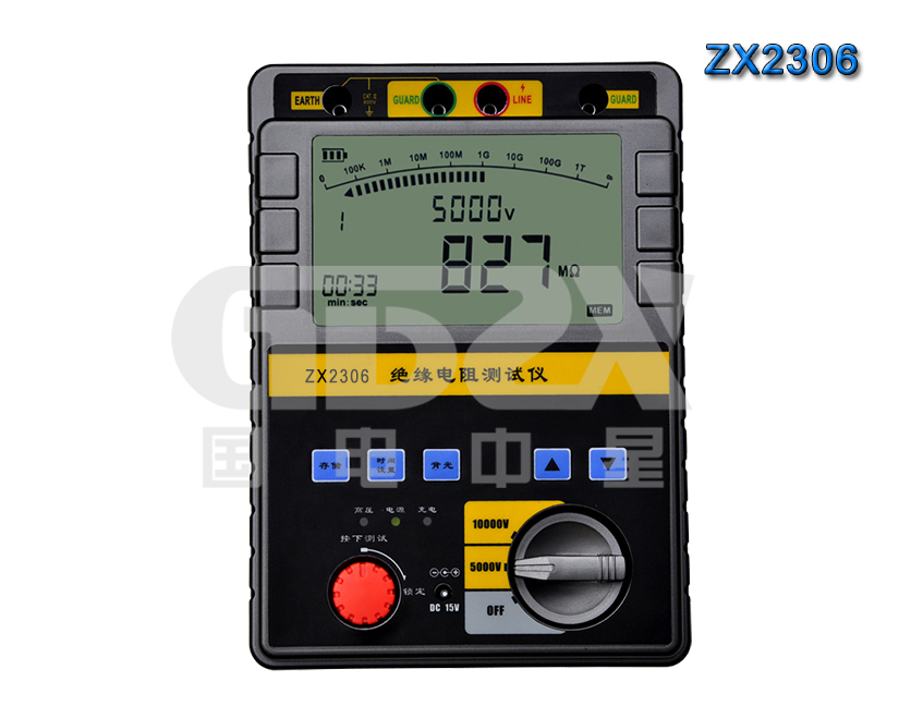 ZX2系列高壓絕緣電阻測試儀采用嵌入式工業單片機實時操作系統,超薄形張絲表頭與圖形點陣液晶顯示器完美結合,該系列表具有多種電壓輸出等級(500V、1000V、2500V、5000V、10000V)容量大、抗干擾強、指針與數字同步顯示、交直流兩用、操作簡單、自動計算各種絕緣指標吸收比、極化指數、各種測量結果具有防掉電功能等特點。是測量大容量變壓器、互感器、發電機、高壓電動機、電力電容、電力電纜、避雷器等絕緣電阻的理想測試儀。